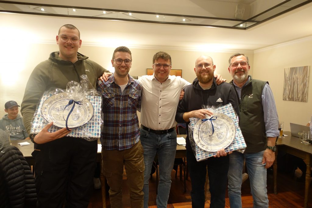 Christian Schröer erinnerte in seinem Rückblick an den ersten Kaiser im ANV. Patrick Potthof errang diese Würde mit dem Fang eines kapitalen Karpfens. Reinhold Hübner errang den Titel des Seniorensiegers , Jörg Fuller fing den größten Hecht (112cm) beim Hechtpokalangeln und Peter Ploß gewann die Vereinsmeisterschaft. Eine besondere Ehrung erhielten Andre Schlüter und Nikita Haparta, die zusammen mit Sebastian Terhechte und Eugen Maier den Gruppenwanderpokal als Mannschaft gewannen. Beide bekamen für ihren ersten Erfolg einen Ehrenteller überreicht.